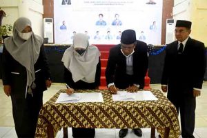 Potret Penandatangan MoU Mahkamah Syar’iyah Jantho dengan Fakultas Syar’iyah dan Hukum Universitas Islam Negeri UIN Ar-Raniry Banda Aceh, Selasa 08 Juni 2021.