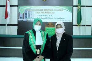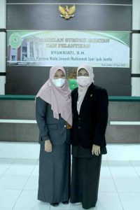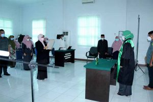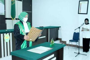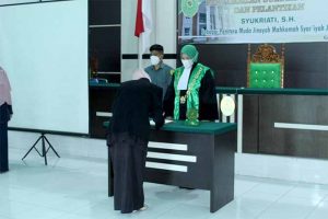 Potret Pengangkatan Sumpah Jabatan dan Pelantikan Ibu Syukriati, S.H. sebagai Panitera Muda Jinayah Mahkamah Syar’iyah Jantho, Senin 08 Juni 2021.