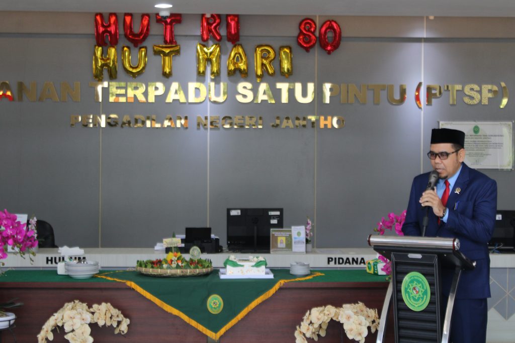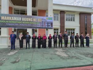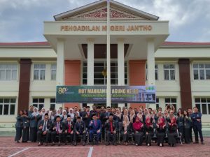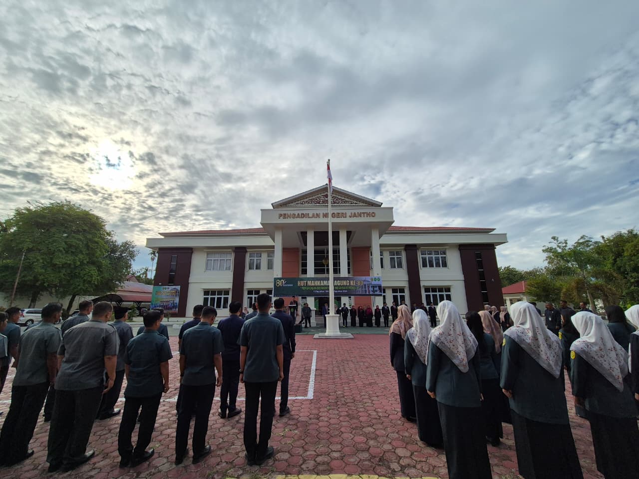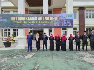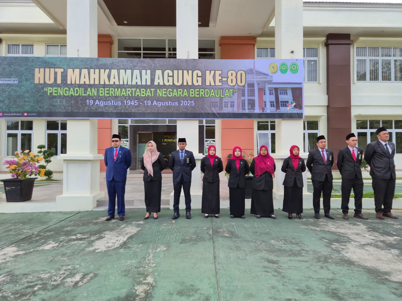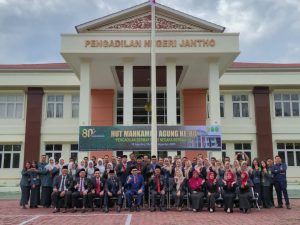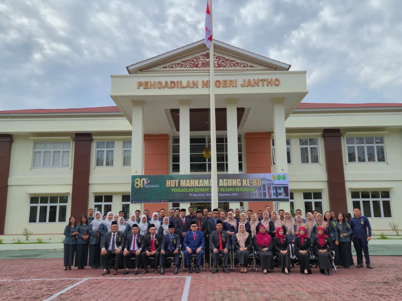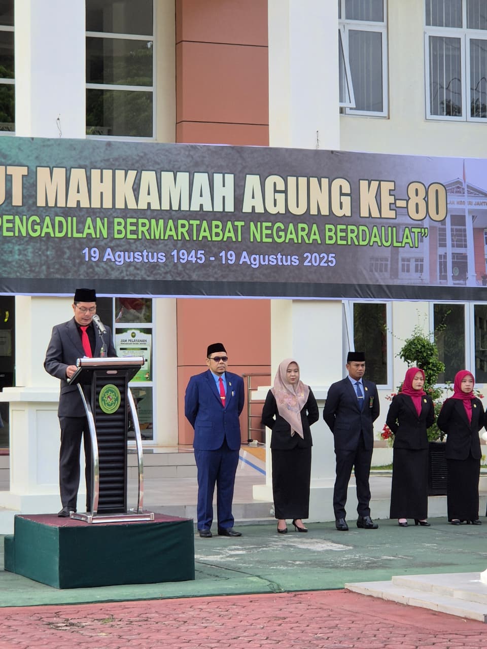 Upacara peringatan HUT Mahkamah Agung RI ke-80 berlangsung penuh khidmat dan dalam suasana kekeluargaan yang erat antara keluarga besar Mahkamah Syar’iyah Jantho dan Pengadilan Negeri Jantho.